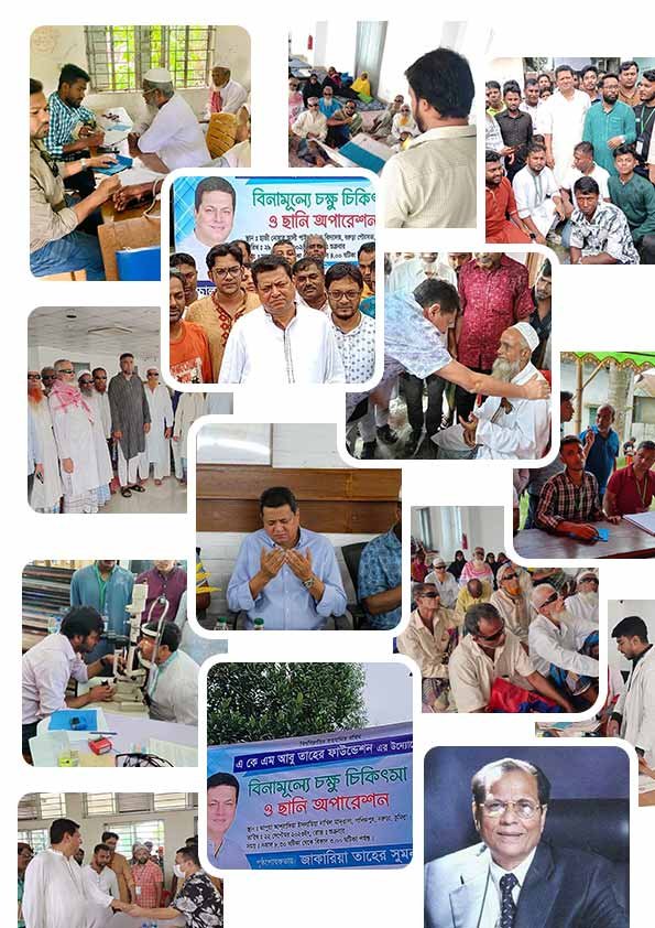 এ কে এম আবু তাহের ফাউন্ডেশনের প্রধান পৃষ্ঠপোষক হিসেবে দরিদ্র ও মেধাবী শিল্পীদের মাঝে শিক্ষাবৃত্তি প্রদান করেছেন। বিগত বছরগুলোতে প্রতিটি ইউনিয়ন ও পৌরসভায় চক্ষু শিবির আয়োজনের মাধ্যমে বিনামূল্যে ছানি অপারেশনসহ অসহায় দরিদ্র চক্ষু রোগীদের চিকিৎসা সেবা প্রদান করেছেন। আগামী দিনগুলোতে এ কে এম আবু তাহের ফাউন্ডেশনের সামাজিক কল্যাণমূলক কাজের পরিধি আরো বিস্তৃত হবে।